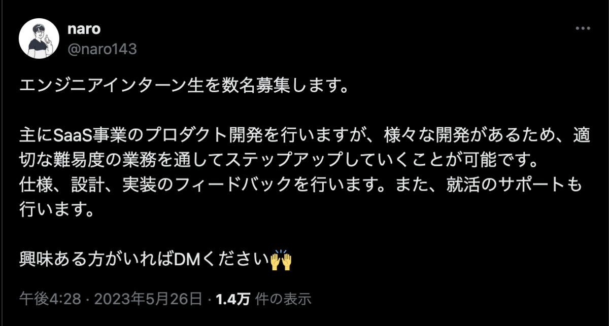 Xでインターン募集の投稿を見て、興味を持ちました。